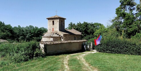 Emprunter le chemin en terre sur 30 m pour arriver à l'enceinte du cimetière qui ceint la magnifique chapelle. Borne à l'extérieur.