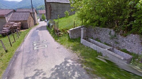 1ère des 6 fontaines de la montée au col de Portes. Très visible sur la droite et clairement repérée avec son panneau "eau potable"