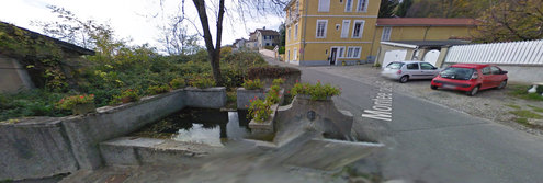 Pendant la "montée de la petite côte" (petite mais bien raide), on trouve la fontaine à gauche au moment d'un virage à 90° à gauche. Elle jouxte un ancien lavoir à ciel ouvert.