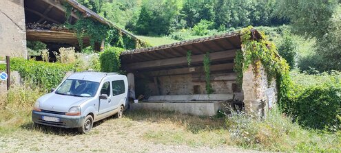 En venant d'Ambérieu, juste après le parking du chateau des Allymes, à la la bascule de pente