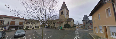 Robinet sur la place du village, adossé au mur de l'église, à côté de la cabine téléphonique.