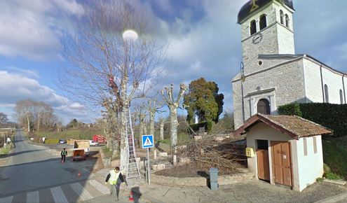Au pied de l'église, dans la rue principale du village