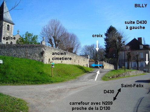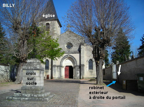 L'ancien cimetière est situé sur les côtés de l'église au bord de la D430 direction Saint-Félix. En provenance de Marcenat sur la D130, dans le village au carrefour avec la N209 (route à très grande circulation) faire gauche / droite pour prendre presque en face la D430 direction Saint-Félix. Au sortir d'un virage à droite et juste avant l'endroit où la D430 fait un angle à gauche, prendre à gauche la bretelle qui dessert l'église et le cimetière puis se diriger vers la gauche. On arrive alors face à l'église dans un renfoncement entre les deux parties du cimetière. Le robinet est à l'extérieur, à droite du portail du cimetière situé dans la partie à droite de l'église (à 620 mètres de la N209). N.B. : L'ancienne borne Bayard implantée entre l'allée desservant l'église et la route, est hors-service.