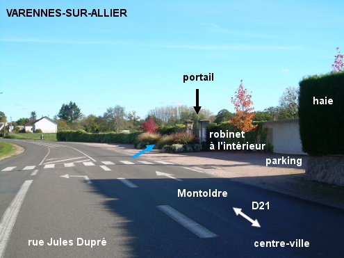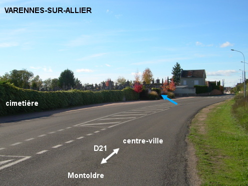 Le cimetière (fléché) est implanté côté droit sur la D21 à la sortie de la ville en direction Montoldre. Le robinet est à l'intérieur du cimetière à droite du portail. 1) En provenance de Montoldre, sur la D21, le cimetière est implanté côté gauche 870 mètres après le panneau marquant le début de la ville. 2) En provenance de Créchy sur la D75, au carrefour en T avec l'ancienne RN7 tourner à gauche (en direction du centre-ville), un peu plus loin au carrefour en Y suivre le sens obligatoire sur la branche droite puis tourner à droite en direction du cimetière (rue de la Vilette) et encore à droite (c'est la D21). Le cimetière est implanté 470 mètres plus loin côté droit, en retrait après une haie arbustive. N.B. : Les horaires d'ouverture sont : de 7h à 20h en été (du 01 avril au 02 novembre) et de 8h à 18h en hiver (du 03 novembre au 31 mars).