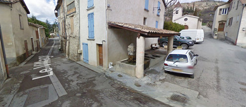 Contre le mur d'une maison au carrefour au sud de l'église.