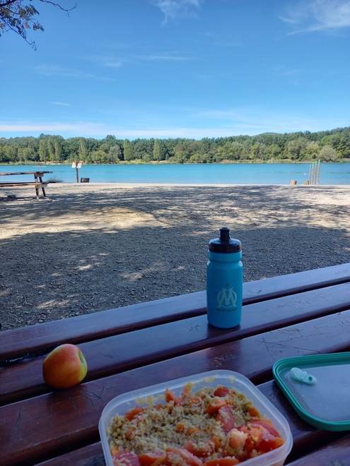 Super endroit, on peut faire le tour de l'étang à vélo ça fait comme une piste cyclable environ 1 km, endroit idéal pour la pause déjeuner on voit sur la photo et aussi pour se baigner, en plein été ça doit être blindé de monde, seul bémol l'autoroute passe juste derrière on entend un peu la circulation mais je recommande ce lieu