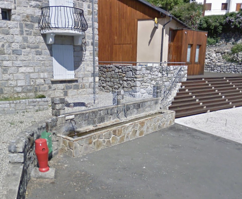 À droite de la route en traversant le village direction le col de Pailhères, près de la mairie