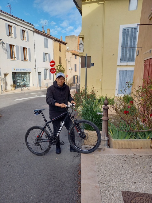 Je crève, en plus la roue arrière, je merdouille pour changer la chambre, ce petit jeune Alexis, très sympa vient me voir pour me proposer son aide, on discute, j'ai les mains pourris, il m'indique cette fontaine à 10 mètres, photos et réflexe "EAU CYCLISME"