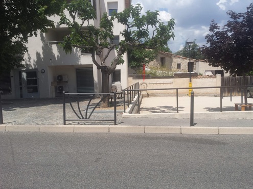 Le robinet est contre le mur, entre la boucherie et le terrain de boules