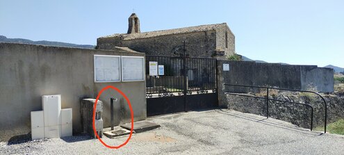 Magnifique chapelle du 12ème siècle, entourée de son cimetière. Et juste devant la porte d'entrée du cimetière, un robinet bienvenu dans ces temps de chaleur