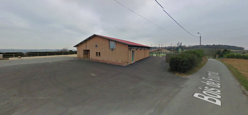 Sur le parking de la salle des fêtes, sur la façade nord.