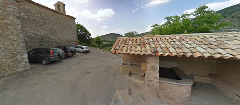 Petit bâtiment au milieu du village. Le Robinet est à l'arrière proche de l'entrée des toilettes.
