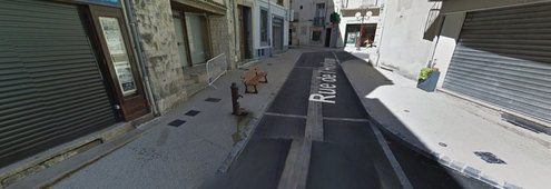 La borne se trouve rue de l'Horloge, une rue longeant l'église.