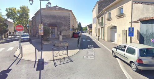Fontaine à pression au croisement de la rue Curie et de l'avenue du Dr. Clément. Proche du GR42/chemin de Compostelle