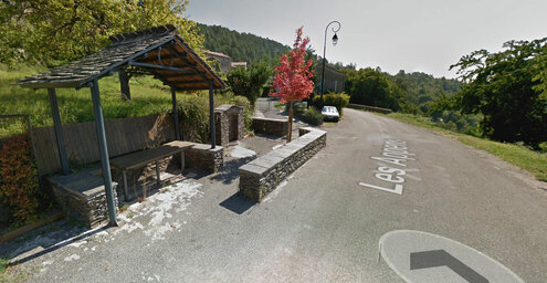 Sur la route principale des Appens, une petite "place" avec un muret en pierre, une pergola et une table avec, à côté, le robinet. Juste après les 2 gros virages du village en venant de la Baraque.