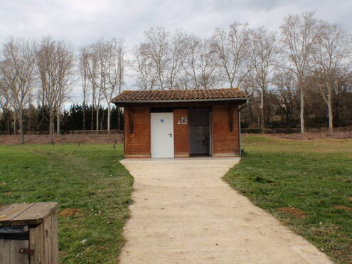 Toilettes publiques dans la base de loisirs de Samatan, sur le sentier-voie verte qui fait le tour du lac, à l’extrémité sud