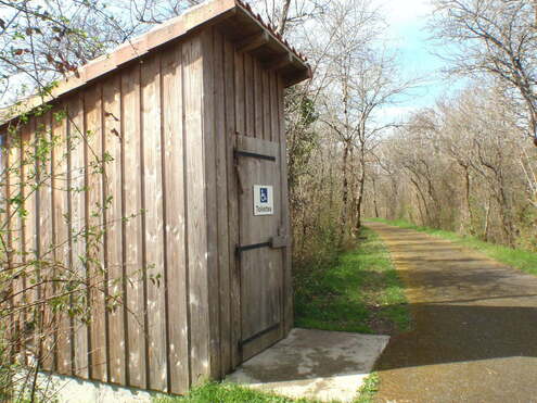 WC publics de type toilettes sèches (sans point d’eau) au bord de la Voie Verte de l’Armagnac, à 50m du parking de Mouchan situé au carrefour D931-D142