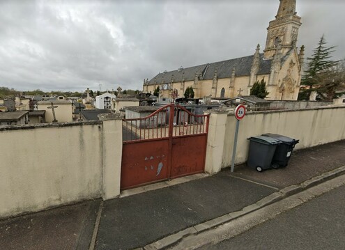 Le robinet se trouve juste à droite après le portail d'entrée du cimetière