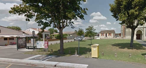 Fontaine entre l'arrêt de bus et la boite aux lettres de la poste