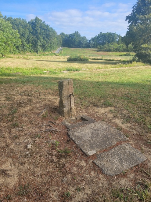 Le robinet est sur le bord du chemin qui va vers l'entrée de l'Abbaye