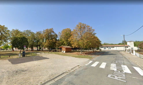 Sur la place ombragée entre la rue du château et la route de Marmande, a proximité de la laverie automatique