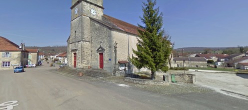 En face de la grande fontaine (non potable), au pied de l'église, petit robinet vert.