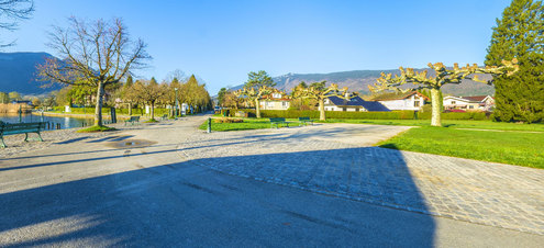 La borne est au bord du lac, au niveau du ponton de l'embarcadère