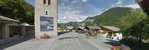 Sur la D32 menant au col du Corbier, en face de l'église.