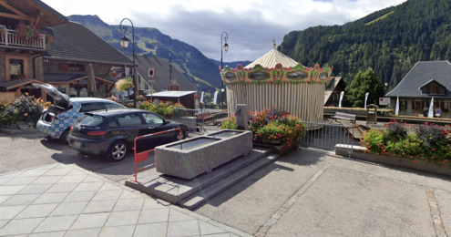 Fontaine devant la Mairie de Châtel (109 route du centre), aujourd'hui équipée d'un robinet poussoir.