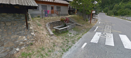 A gauche en remontant la D186, en face d'un arrêt de bus.