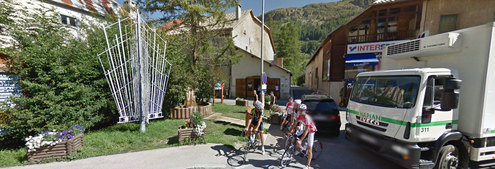 La fontaine se trouve au coeur du village, sur la route menant au col du Lautaret.