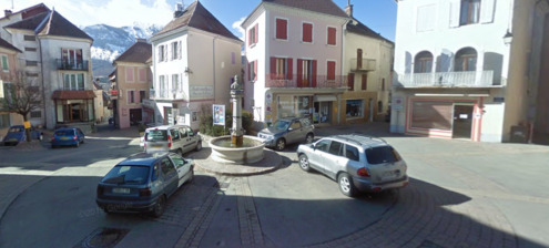 Au centre de la place.