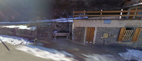 Dans un renfoncement du mur en face de la place au sud du hameau.