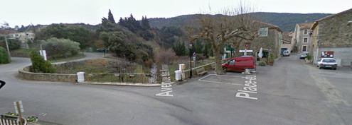 Cette borne se trouve sur la place du village en bordure de la D177 à côté du pont qui enjambe le Rieuberlou.