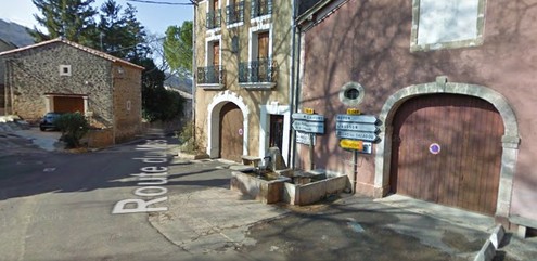 La fontaine se trouve à l'intersection de la D8 qui va en direction de Mérifons et de la D148 qui permet d'aller à Octon (D148E) et Liausson.