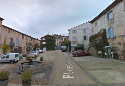 La fontaine se trouve dans le village , sur la place des Comédiens, devant la Mairie.
