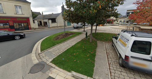 Une borne se trouve devant l'église, à l'angle de la rue des écoles et de la rue Marcel Vignaud