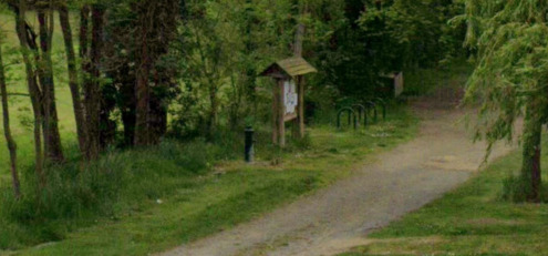 La fontaine ce trouve à côté du panneau d’information à gauche en arrivant.
