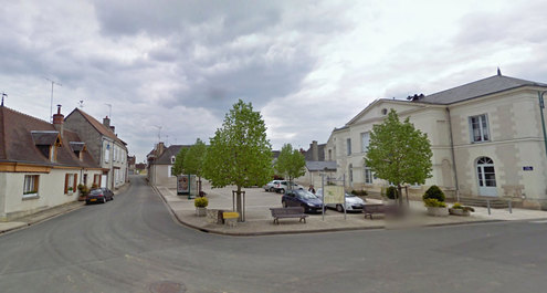 A l'angle de la place face à l'église