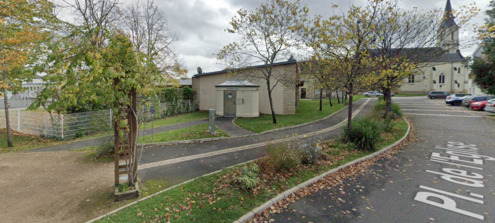 Des toilettes publiques se trouvent sur la place de l'église