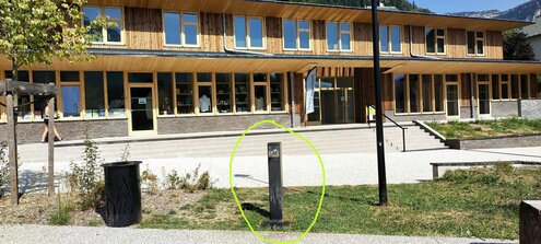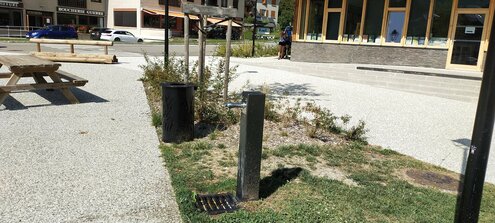 Juste devant le nouveau bâtiment de l'Office de Tourisme, sur le plan de ville, une fontaine-borne.