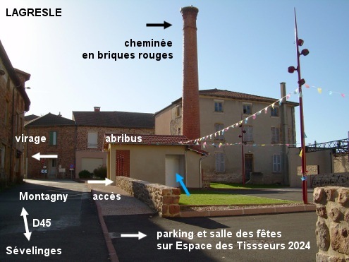 Ces toilettes (construites en 2024) se trouvent dans le centre du village, dans le bâtiment qui comprend un abribus et qui est accolé à une très haute cheminée en briques rouges, au bord du parking de la salle des fêtes. 1) En provenance de Sévelinges sur la D45, le parking au fond duquel il y a la salle des fêtes (salle Bistanclaque 2024) et au bord duquel il y a le bâtiment avec les toilettes côté parking et avec l'abribus côté route, est situé sur le côté droit de la D45. La cheminée qui est un excellent point de repère, est accolée à la droite dudit bâtiment et l'entrée des toilettes nous fait face. On peut soit passer par le parking, soit continuer sur la route jusqu'au bâtiment et prendre l'allée piétonne après le muret qui borde le parking et avant le bâtiment. 2) En provenance de Montagny sur la D45, peu après avoir passé l'église érigée côté droit on découvrira derrière la rue adjacente à gauche (celle qui mène au cimetière), une grande croix sur la gauche et la fameuse cheminée à sa droite. Le bâtiment qui comprend les toilettes est à droite de la cheminée et à gauche de la D45. Contourner l'abribus qui est dans ledit bâtiment côté rue, pour trouver l'entrée des toilettes côté parking, sur la face opposée à celle que l'on voit de prime abord. N.B. : En hiver, l'accès aux urinoirs à gauche est condamné et l'eau est coupée sur l'évier qui est face à l'entrée (sans aucune porte) mais dans la cabine WC à droite l'eau reste en service.