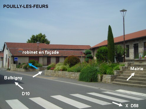 Les toilettes sont situées à proximité de la Mairie. Sur la D10 en direction de Balbigny, juste après l'intersection avec la D58, on voit la Mairie sur la droite. Entrer sur la grande place bordée d'un muret, les toilettes sont sur la gauche dans le coin côté rue de Cluny, au niveau du panneau de l'arrêt de bus. Attention : l'eau du lavabo n'est pas potable (il y a un écriteau d'avertissement), par contre le robinet fixé sur le mur extérieur (à droite de l'entrée des toilettes) délivre quant à lui de l'eau potable comme cela est indiqué sur un petit écriteau blanc en surplomb.