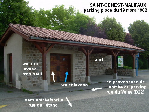 Les toilettes se trouvent dans le coin d'un parking situé à côté du rond-point sur la D22 direction Saint-Romain-les-Atheux. N.B. : Utiliser le lavabo qui est dans la cabine WC accessible aux handicapés (porte de droite), étant donné que l'autre lavabo qui est dans la cabine WC turc est quant à lui trop petit. 1a) En provenance de Saint-Romain-les-Atheux sur la D22, au rond-point avant le centre-ville prendre la deuxième sortie tout droit (rue du Velay, suite de la D22) puis entrer à gauche sur le parking (sortie interdite ici). Avancer jusqu'au grand bâtiment rectangulaire implanté au fond du parking dans le coin droit, qui comporte un grand abri puis les toilettes (à 60 mètres de la D22). 1b) Au rond-point sur la D22, on peut aussi prendre la troisième sortie (rue de l'étang) puis entrer à droite sur le parking (entrée / sortie). Avancer jusqu'au fond du parking pour arriver face aux portes des toilettes. 2) En provenance de Saint-Sauveur-en-Rue sur la D22 (et en passant près du col de la République) au carrefour en centre-ville avec la D501, faire gauche / droite pour prendre la suite de la D22 direction Saint-Romain-les-Atheux puis rouler tout droit jusqu'à arriver en vue du rond-point. Avant celui-ci, entrer à droite sur le parking, ou si on a loupé l'entrée : prendre la première sortie sur le rond-point puis prendre à droite l'autre accès au parking. On trouvera le bâtiment des toilettes au fond, dans le coin diagonalement opposé à celui qui jouxte le rond-point.