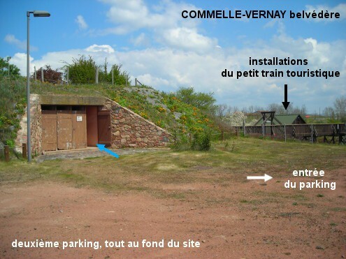 Ces toilettes sont situées sur le site du belvédère de Commelle, en dehors du village de Commelle-Vernay, au-dessus du barrage sur le lac de Villerest. A partir du rond-point D18 / D56, prendre la D18 direction Villerest qui descend sur le barrage, attention : à peine quelques mètres après ce rond-point, tourner à gauche pour entrer sur le site du petit train touristique de Commelle-Vernay. Continuer au-delà du premier parking de forme circulaire : monter l'allée asphaltée en face, on longe les installations touristiques qui sont à gauche, continuer tout au bout, ça débouche sur la droite sur un deuxième parking en terre battue légèrement surélevé. Les toilettes sont dans un bâtiment semi-enterré dans une butte à droite au fond. La porte de droite est une cabine avec lavabo.