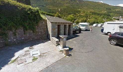 Toilettes publiques avec robinet d'eau potable sur le parking gratuit de la rue Justin Gruat