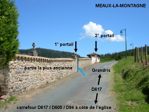 Le cimetière est implanté côté gauche à la sortie du village sur la D617 en direction de Grandris. 1) En provenance de Saint-Bonnet-le-Troncy et du lieu-dit Bussières sur la D605, au carrefour près de l'église (les numéros de routes ne sont pas indiqués et il n'y a qu'une signalisation locale), tourner à gauche en suivant la flèche ''cimetière''. Environ 80 mètres plus loin on sera à hauteur du premier portail du cimetière implanté côté gauche donnant dans la partie la plus ancienne. Le robinet est à l'intérieur du cimetière, à gauche de ce portail. 2) Sur la D617 en provenance de Grandris, 40 mètres après le panneau de début de village, on sera à côté du portail qui donne dans la partie la plus récente du cimetière implanté côté droit. À l'intérieur à droite de ce portail et au coin d'un bâtiment, il y a l'emplacement pour un deuxième robinet mais celui-ci n'était pas en service. Donc continuer sur 30 mètres jusqu'à l'autre portail qui donne dans la partie la plus ancienne pour trouver un robinet en fonction.