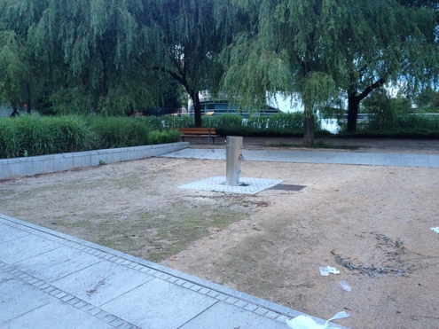 Une fontaine se trouve près de l'aire de jeux (tables de ping-pong), à proximité du cinéma Pathé.