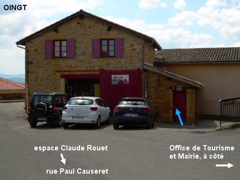 Ces toilettes se trouvent dans un grand bâtiment construit quelques mètres à gauche de celui de la Mairie et de l'Office de Tourisme (fléché) situé dans le vieux bourg (en zone piétonne). 1) En provenance du lieu-dit Le Saule-d'Oingt sur la D120, au carrefour en T avec la D96 qui arrive à gauche de Theizé, tourner à gauche puis aussitôt à droite en suivant la flèche ''Office de Tourisme'' (rue du Puits). Environ 260 mètres plus loin, après le panneau ''interdiction de tourner à droite, sauf riverains et livraisons Mairie'', tourner en épingle à droite en suivant les flèches ''Office de Tourisme'' et ''toilettes''. On entre dans la zone piétonne et 50 mètres après, en suivant les flèches tourner à gauche dans la place qui est devant la Mairie. À sa gauche à quelques mètres, il y a un grand bâtiment sur l'avant duquel à l'extrémité droite une porte dûment identifiée donne dans les toilettes (à 25 mètres de la rue). N.B. : Dans ces grandes toilettes (rénovées en 2017, d'après un écriteau), les deux lavabos larges se trouvent au fond à gauche. 2) En provenance du Bois-d'Oingt sur la D120 continuer tout droit dans la D96 à laquelle elle se superpose, après les deux dos d'âne (si le ''WC 1'' n'est pas disponible) et juste après le carrefour à gauche avec la suite de la D120, tourner à droite (rue du Puits), en direction de l'Office de Tourisme et même itinéraire qu'au point 1.