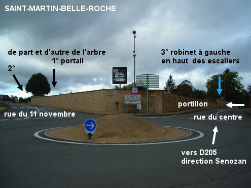 Le cimetière est implanté à la périphérie du village à l'angle de deux rues secondaires. Sur la D205 en provenance de Sennecé-lès-Mâcon, au grand rond-point tourner à droite en direction du centre bourg et continuer tout droit en direction du cimetière, ensuite tourner à gauche devant l'église (rue du 11 novembre). Le cimetière est implanté côté gauche 300 mètres plus loin (à 660 mètres de la D205). Il comporte deux portails sur le mur perpendiculaire à la route desservis par deux allées. Que l'on entre par le premier ou le deuxième portail, on trouvera un robinet à l'intérieur sur sa gauche. Si l'on continue jusqu'au petit rond-pont (au bord duquel il y a en sens inverse le panneau de début de village contre le mur du cimetière à l'angle), et que l'on tourne à gauche (rue du centre), on passera devant le portillon du cimetière. Si l'on entre et monte les sept marches d'escaliers entre deux murs, on trouvera le troisième robinet en haut sur la gauche. P.S. : Si on continue tout droit on retombe sur la D205 direction Senozan (à droite, 450 mètres plus loin).